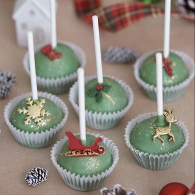 6 moist nut-vanilla cake pops, handmade and coated with the finest Belgian Callebaut chocolate. Perfect for the Christmas season and ideal as a small treat, gift, or party sweet.